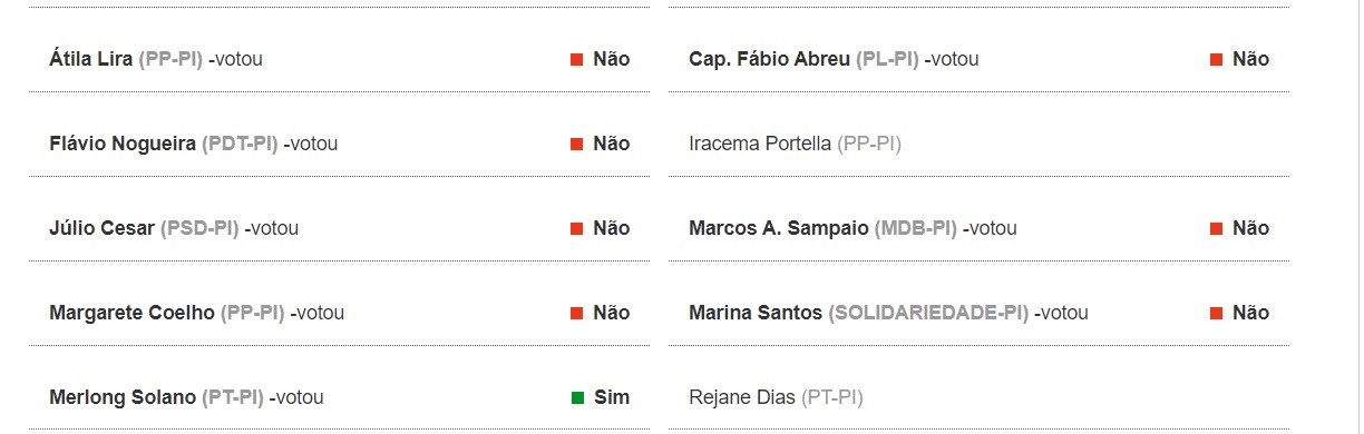 Átila Lira (PP), Margarete Coelho (PP), Fábio Abreu (PL), Júlio César (PSD), Marina Santos (SOLIDARIEDADE), Flávio Nogueira (REPUBLICANOS) e Marcos Sampaio (MDB) votaram contra.